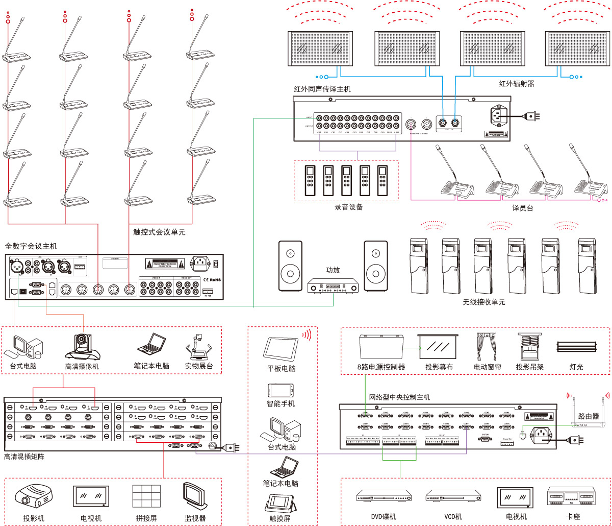 - 系統(tǒng)支持雙機熱備份及會議室合并/拆分功能,適合各類會議應用場所;