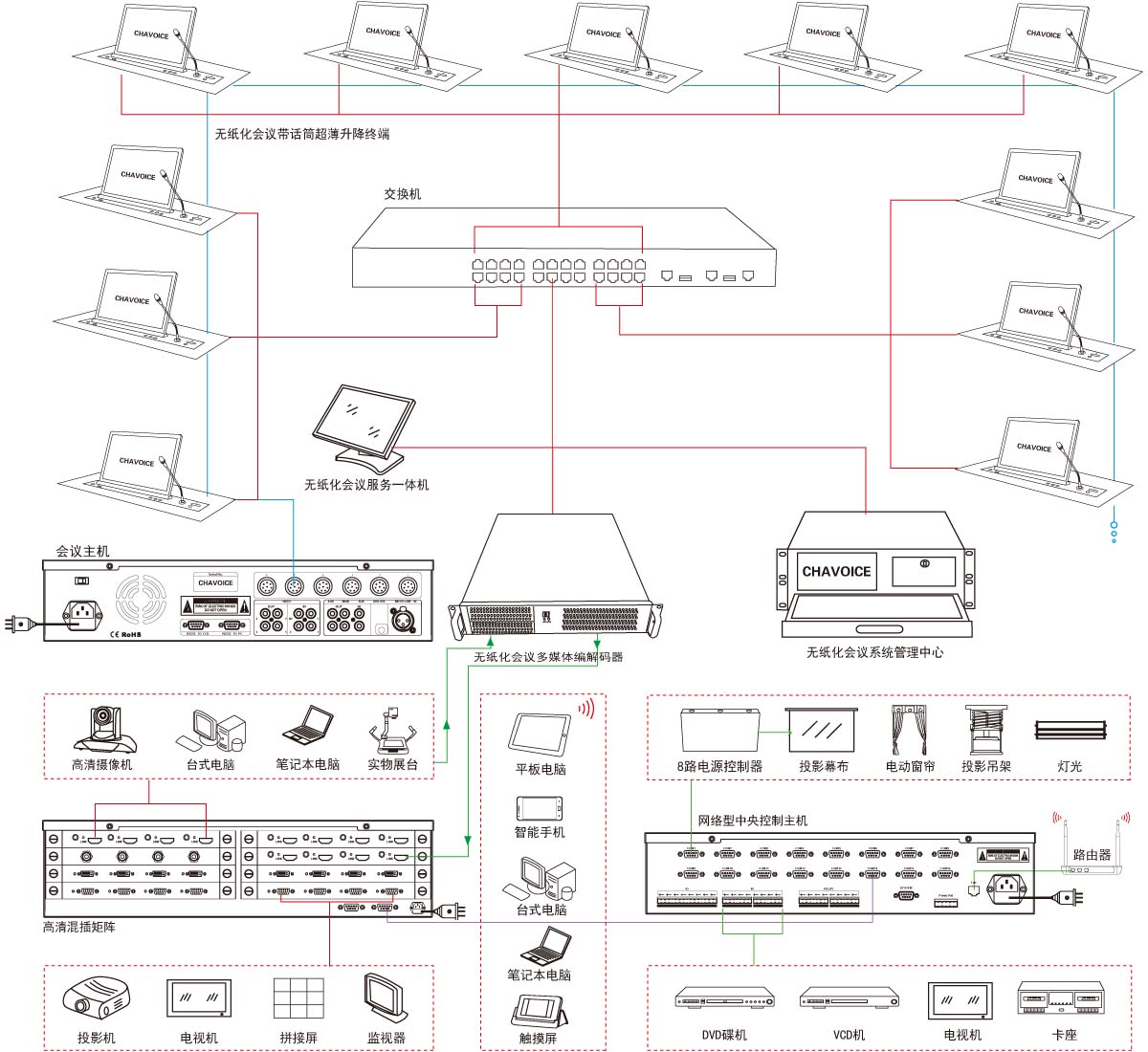 系統(tǒng)采用ID尋址方式,會議管理軟件或會議主機對單元自定義ID編號,避免ID號重復;